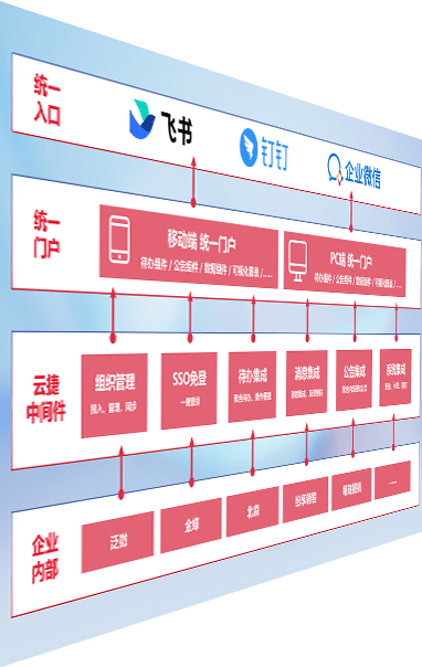 对协作平台提供支持服务,,,支持企业应用与协作平台对接,,包含组织同步、、、消息集成、、、、待办集成等。。。支持目前主流的协作平台:钉钉、、、企微和飞书。。。